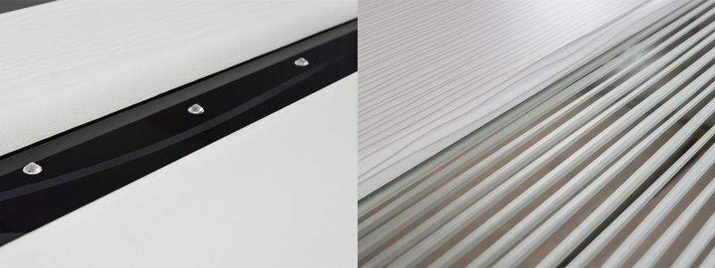 Сдержанность прямых линий - это особенность коллекции «Style». В моделях коллекции используется высокопрочное стекло триплекс, которое можно украсить рисунком, гравировкой. Объемная фрезеровка и глянцевый блеск стекла придает моделям особое очарование.